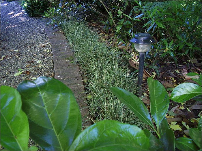 A slow clumping mondo with almost total white strap leaves when grown in the sun or green with attractive white edge when grown in shade. Mid to late summer flowers that are within the foliage. Grows to a height of 30 cm. Ideal for borders, rockeries, edging with its superb contrast to other foliage.